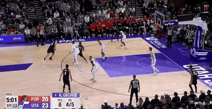 对阵爵士,3分1助1断1帽3失误6犯规